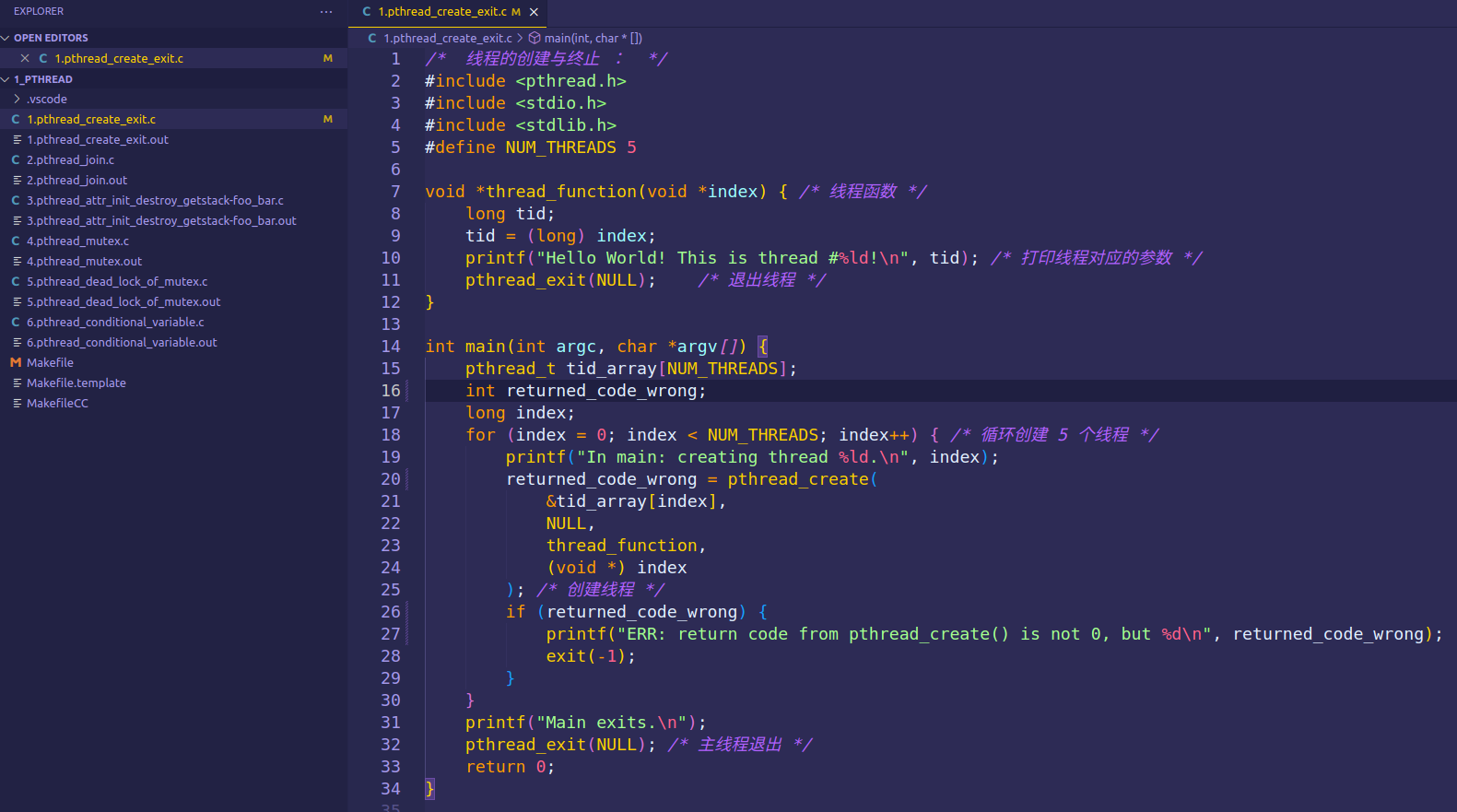 随便改个名字就行,例如把上边1.pthread_create_exit.c中的returned_code_err改为returned_code_wrong改成这样