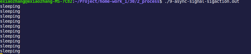程序代码利用sigaction函数实现当进程首次收到SIGINT(Ctrl+c)信号时在终端打印Ouch信息,第2次按Ctrl+c时进程退出。